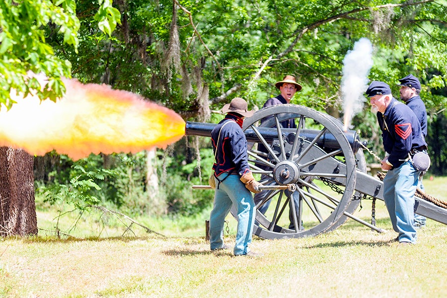 A cannon is fired at a service to remember Civil War soldiers who died in the Battle of Selma, Alabama and at a nearby prisoner of war camp. (Alaina Denean Deshazo | The Selma Times-Journal)